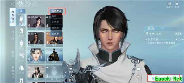 2、在装扮站的选项里选择热度项,就能看到一段时期内的最热的捏脸数据,选中后选择使用该设计即可。