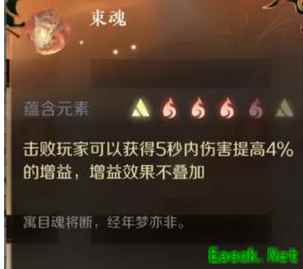 4、火元素 适配于纯输出向的职业,拥有极短的cd触发效果,以及全面真实伤害和叠加攻击速度buff。 2级效果:减少冷却值,全面连招输出流畅。 3级效果:在2级的基础上,提高了输出能力以及攻击力幅度变化。 推荐职业:所有输出职业可用