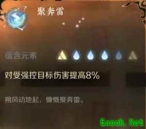 3、水元素 适用于全职业,还要是配置控制技能的,该元素增益的效果非常强悍。 2级效果:在被控制住的敌人,能够减少所造成的伤害,单挑极力推荐。 3级效果:该元素触发效果只有素问职业简单,其他职业的触发效果有点难度。 推荐职业:素问推荐到3级,其他职业2级即可