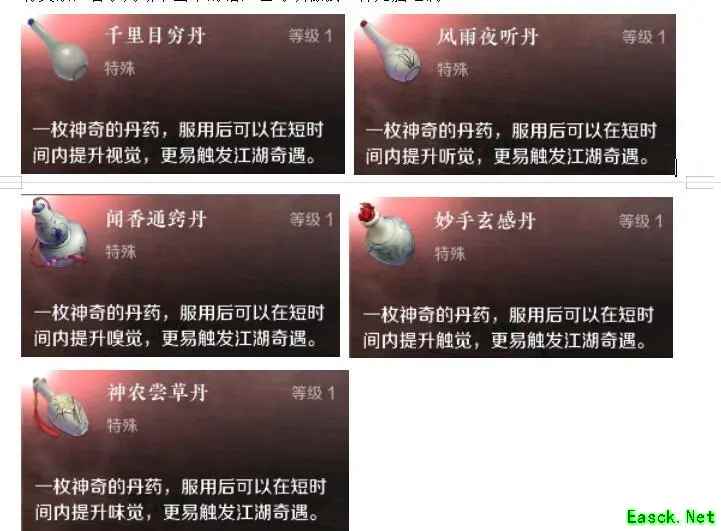 3、善用五感药,在游戏内探索开箱子时,能获得很多这种道具,分别增加五种感官值,去做大吉这种奇遇时,可以吃上五感药再去,能大大提高触发几率,该吃哪个应该是奇遇内容有关系,名字判断不出来的话,也可以直接吃满。