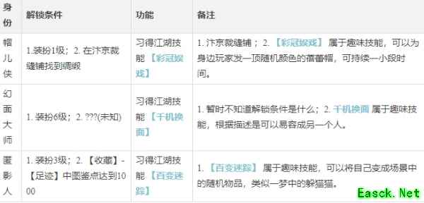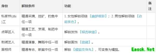 进阶身份 进阶身份有 【私家栉工】、【点翠匠人】、【刺绣艺人】、【面相师】 这四种。