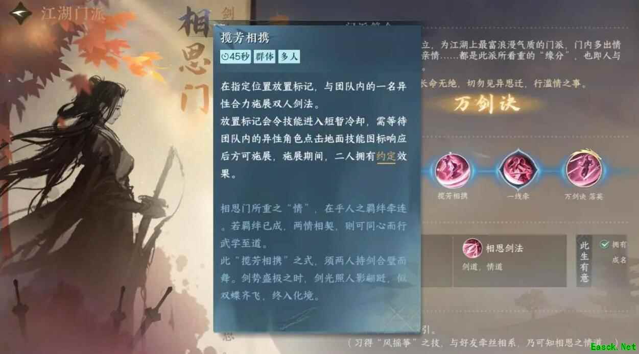2、揽芳相携 这个技能的施展需要玩家在团队当中与另一个队友之间配合才能够施展出来的双人剑法。