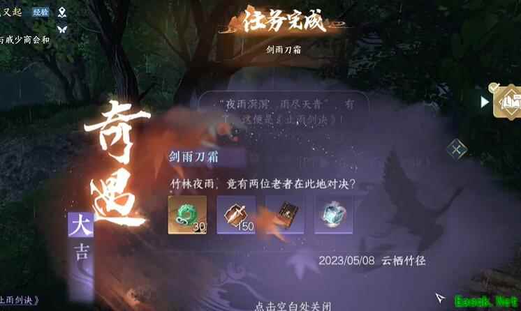 《逆水寒手游》剑雨刀霜攻略解锁方式:呼吸-武侠奇遇-剑雨刀霜 1、前往云栖竹径然后在这里的光点进行互动。