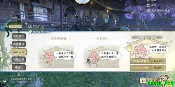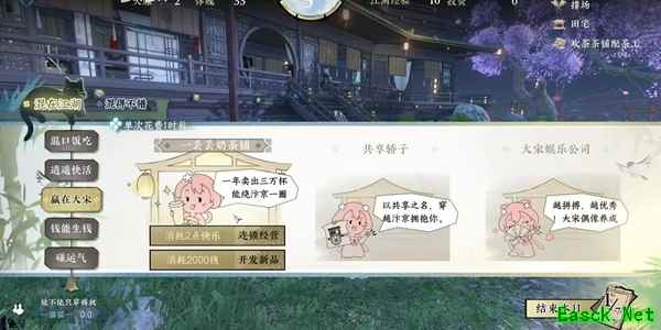 6、前两天赢在大宋选择奶茶铺-开发新品(前两天奶茶铺可以无伤过)。 (建议答案:新品买一送一,果味奶茶也不错、童年的回忆、亲自上阵、用次等茶叶代替)