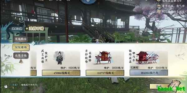 10、最后一天结束时不要直接点结束,买最贵的房子和马车,点击提交,完成名动江湖就可以获得三倍帮贡了。