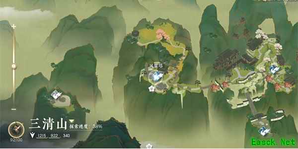 任务步骤 1、首先我们需要来到三清山(1051,846),这个位置跳崖下去,下去之后我们就会出现在一个平地上;
