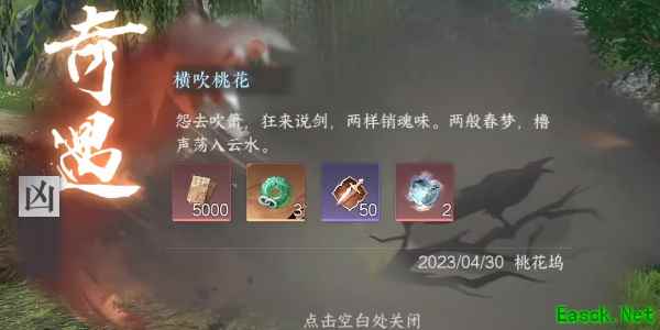 4、喝完酒以后,我们还会进入一段剧情玩家细心看完剧情之后,我们就可以找到闪光点离开这里了,离开之后我们的奇遇任务横吹桃花也就完成了;