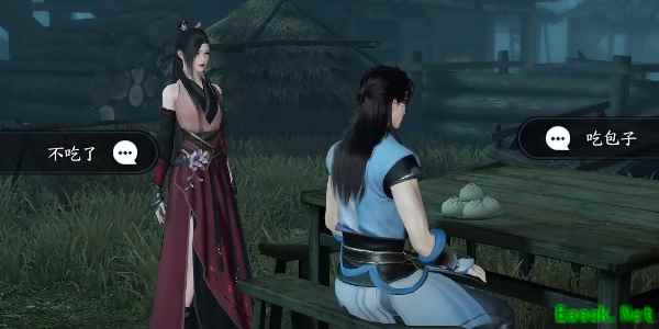 2、对话结束之后我们向老板要一笼包子,然后我们坐在桌子前等待,包子来了之后我们选择不吃了,之后我们就需要和老板娘进行战斗;