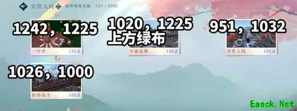 逆水寒手游共赏人间打卡位置有哪些1.逆水寒手游共赏人间打卡位置如下,大家可以参考下面的坐标。