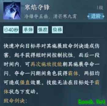 二、冷血-寒焰夺锋 1、该技能非常适合用来打3v3小团队作战。 2、无论是追击、霸体,还是技能强控,都可以满足九灵的职业需求。