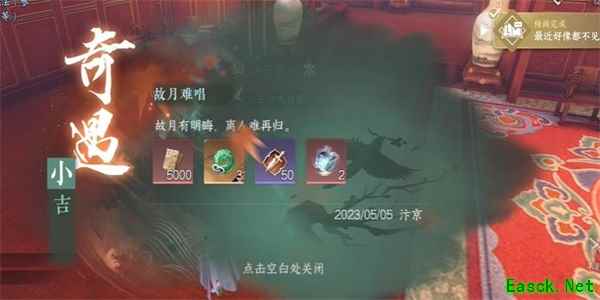4、完成对话之后,我们就可以获取到任务奖励,并且完成奇遇任务。