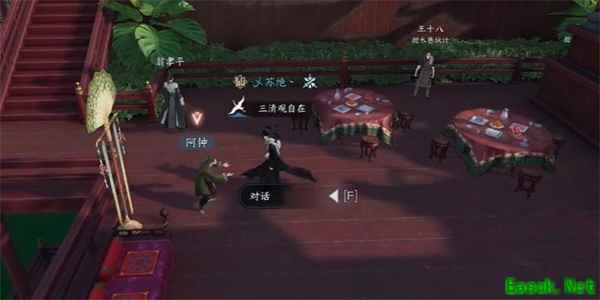 2、接着我们在对话中得知唱月姑娘被罚在房间内,然后我们就需要与阿钟进行对话,吩咐他上点菜。