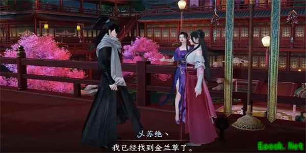 2、接着我们就在对话中得知,若霜需要金兰草来救治,我们就前往到药铺询问是否有金兰草。