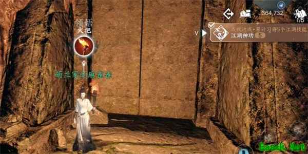 4、进入洞穴当中,就会提示我们使用大门口的火把点燃,图下标记的三个点位。