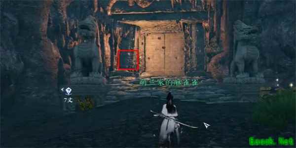 4、我们进入到一处洞穴当中,我们靠近大门就可以看到火把,拾取火把,我们就可以获取到火把的技能了。
