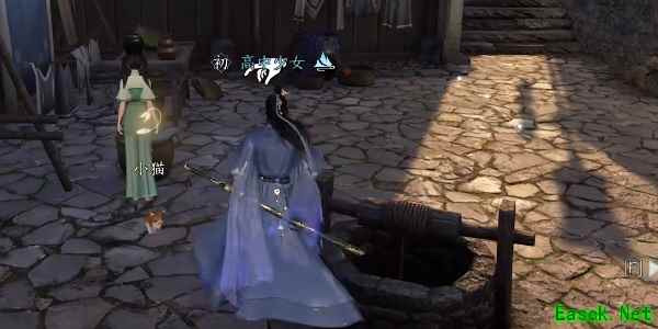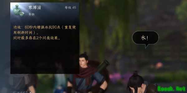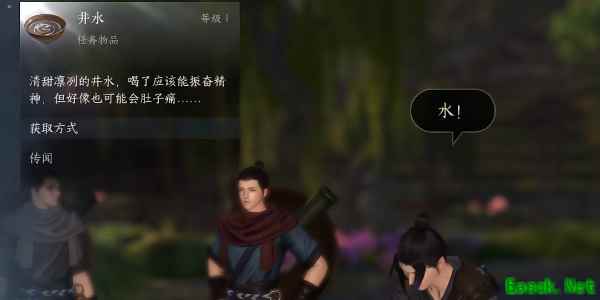2、服用后我们会再次进入剧情对话,这次需要的是水,我们直接给他寒潭请(是不可以进行解渴的所以我们需要去打水);