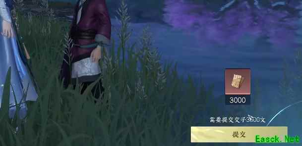 任务步骤 1。首先我们需要来到桃溪村(911,1274)的位置我们可以在河边看到蒋文明,靠近进行对话,剧情对话我们需要给他3000交子;