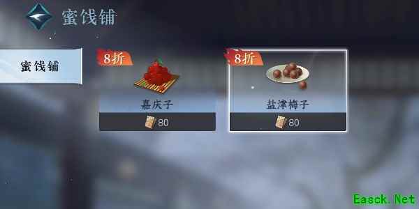 2、我们根据任务的引导需要和李杏儿进行对话,对话我们选择蜜饯铺,然后我们购买这个梅子;