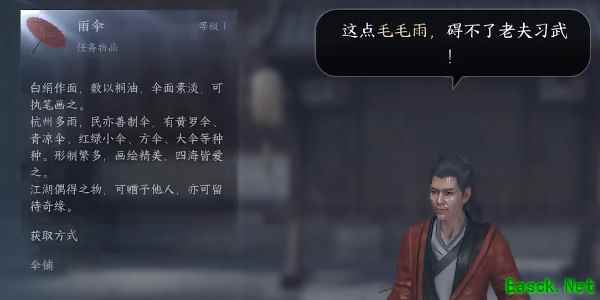 3、对话结束之后我们需要等待下雨天,然后再次找到李肥虎我们出示雨伞给它即可,进入对话对话结束之后我们的任务也就完成了;