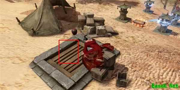 2、我们到达目的地之后,就跟随着任务指引,前往到井口,打开井盖我们就可以进入到荒沙洞当中。