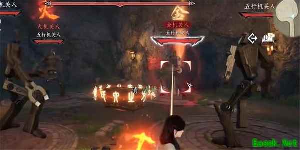 3、我们推开门进入到密室里面,接着我们就跟随着声音寻找到图下的位置,我们需要击败所有的五行机关人。