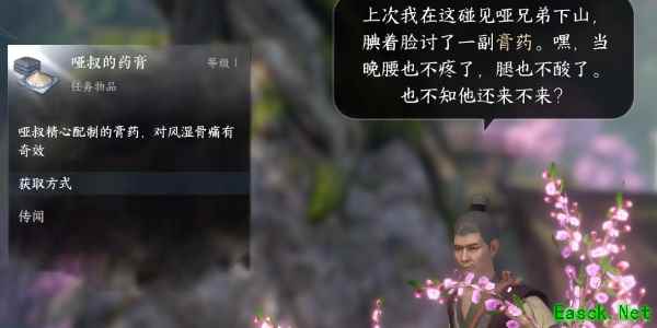 2、来到三清山之后,我们来到自在门和哑叔进行对话,对话结束之后我们需要提交仙鹤草给他(我们可以在集市上购买)提交后我们就可以获得膏药;