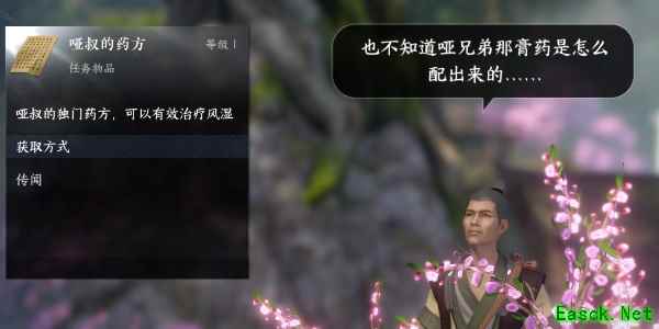 任务步骤 1、首先我们来到上述桃溪村的位置我们可以看到树下的周顺才,我们和他进行对话,对话结束后根据线索向在三清山的哑叔讨份膏药;