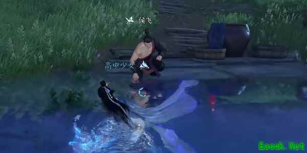 3、根据线索我们需要找到王世贵继续询问,对话结束之后我们找到河边的候飞进行对话;