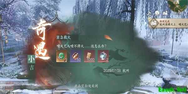 《逆水寒手游》紧急救火奇遇攻略奇遇:紧急救火 位置:杭州 逆水寒手游紧急救火奇遇攻略: 1、首先我们前往到【936,1328】,与阿吉进对话,才可以解锁该奇遇任务。