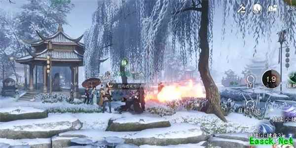 2、接着我们需要帮助阿吉,使用江湖技能烈火烧为众人原表演一番。