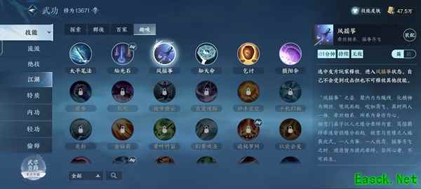 2、解锁之后,玩家可以在武功的江湖趣味技能页面找到它。