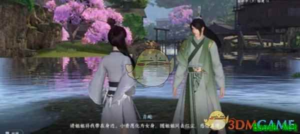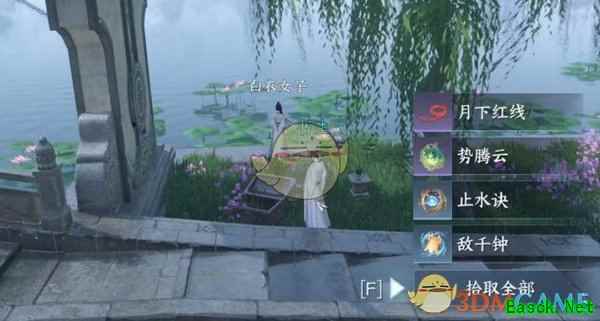 5、最后来到提示最后的桥边上,找到白衣女子,对话完成之后,能够获得奖励,其中就包括月下红线。