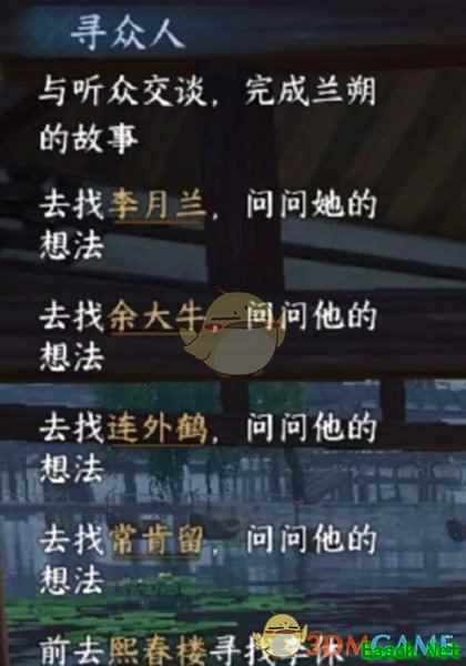 3、和兰朔对话之后接取任务,根据提示找到上面那些任务,一个个完成对话。