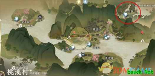 2、如果玩家没有开启任务的情况下,那么就无法进行引导跟踪,需要玩家直接来到桃溪村的空谷附近(928,797)坐标位置来找寻她。