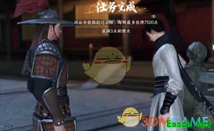 4、交付个杨志之后我们就可以完成任务了,任务完成之后我们可以获得3个剧情点,风云令、燕云泽、五韵谣、1000交子袋;