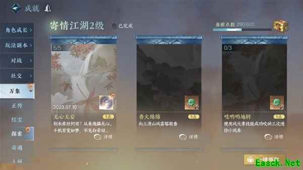 上面的五个光点都阅读完成后,打开我们的收藏,在万象-探索里面便完成了一个成就【无心无妄】,还有我们的【诛邪之心】,点击后即可获取。