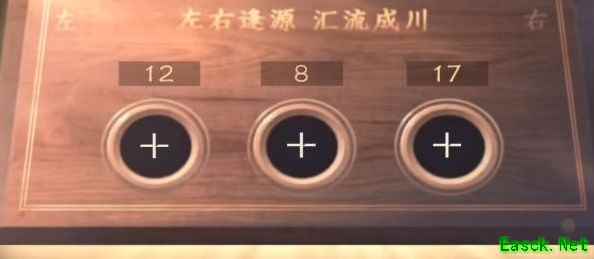 2、将三个龙头全部放置放置到最低处,可以解锁第一个宝箱,并获得三个数字。(数字非常关键,用来解锁最后的宝箱。)