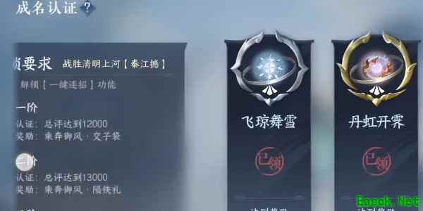 3、成名赏达到踏歌沧海。成名伤需要玩家打开角色里的成名赏,点击成名认证,之后每个阶段都有要求,需要玩家完成。