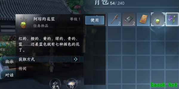 5、打开背包点击使用花篮,接着再出示给之柏看这个任务就完成了。