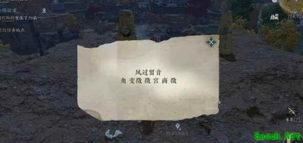 按照顺序对“变徵(zhi)”——“徵”——“变徵”——“角”——“商”对石块依次使用技能【风起云涌】,需要我们从正面吹,要不然出现不了,然后就可以开启宝箱。