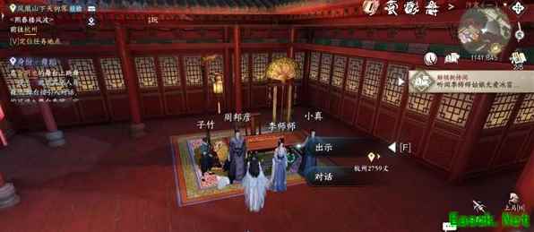 3.去汴京(1120,928)找到阿和出示道具“李师师的钱袋”,获得道具“张老板的菜谱”然后根据对话前往杭州。