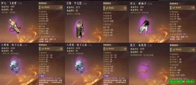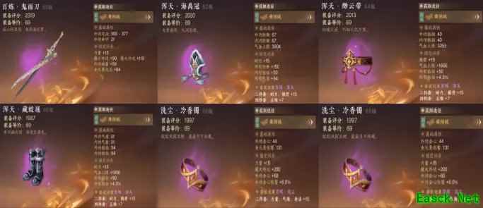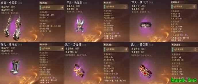 护腕【浑天-飞夷臂】衣服【百炼-中天铠】手套【浑天-断肠手】戒指【六尊使-驭下之戒*2】项链【洗尘项链】