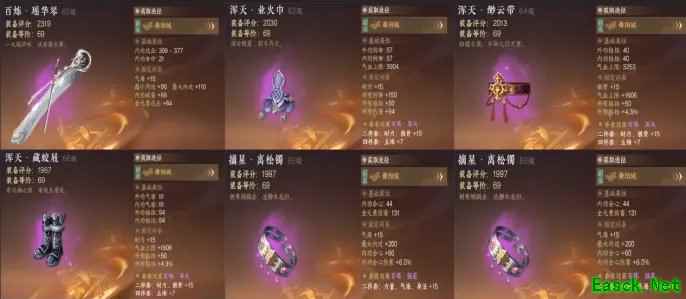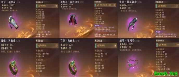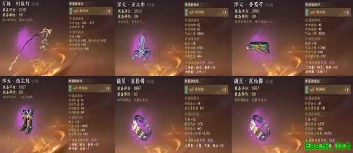 九灵推荐 武器【百炼-归寂灯】头盔【浑天-业火巾】腰带【浑天腰带】鞋子【浑天鞋子】首饰【摘星手镯*2】