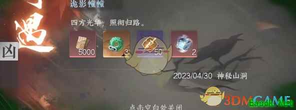 5、查看完成,根据任务的引导找到闪光点离开此地,离开之后奇遇任务诡影幢幢也就完成了。