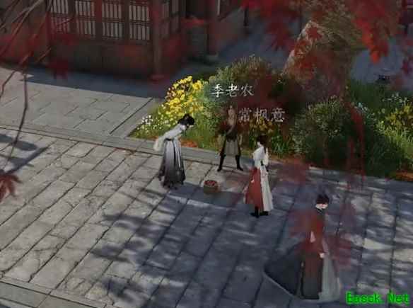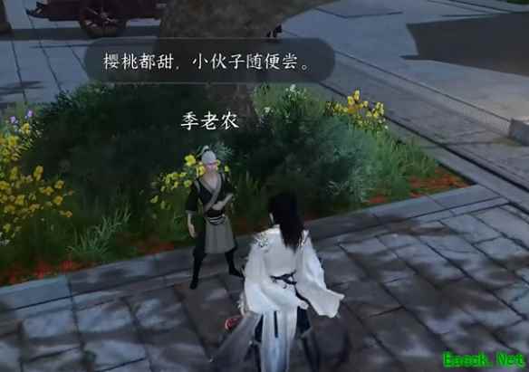1、打开汴京地图,来到该(998.1181)坐标位置处,选择与季老农npc沟通。 2、答应季老农品尝他的樱桃,这时不远处来了一位女子。