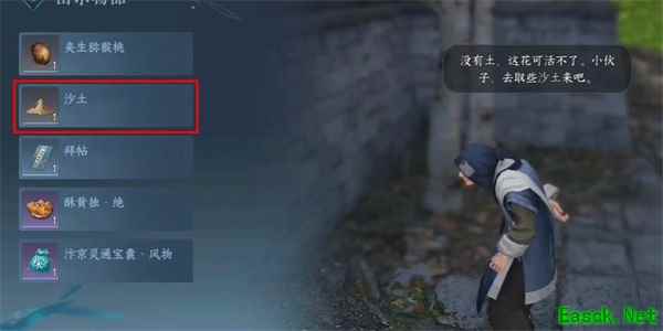 3、之后玩家需要去集市上购买沙土,随后回到梁婆婆这里对话,对话结束即可完成此任务。
