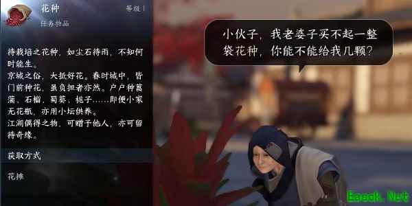 逆水寒手游花香如故怎么完成1、首先先来到汴京找到梁婆婆,接着玩家需要先在旁边的花铺购买花种,之后向她出示花种;