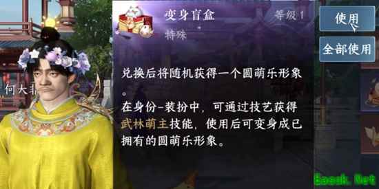 4、点击兑换奖励,里面能兑换变身盲盒,最后在背包里使用即可解锁武林萌主了。