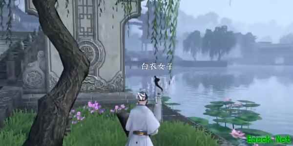 2、与江边草对话后开启剧情,我们变成书生和白衣女子(坐标1107,1254)对话获得相思门信物【月下红线】。