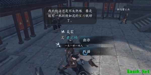 3、来到杭州怀远营(1186,766),找到npc吴震,和他对话将背包中的西域宝刀交给他;并且告诉他这是他哥哥为他准备的。